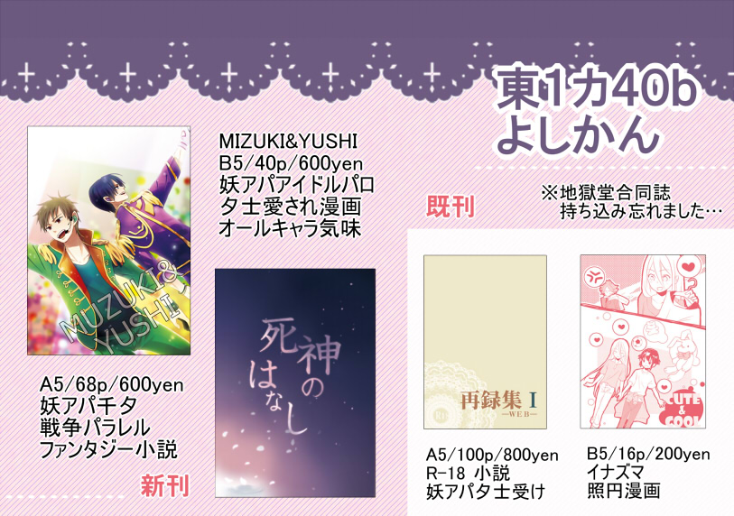 地獄堂合同誌はよしはらのウッカリによって搬入できませんでした大変申し訳ございませんあああああ……